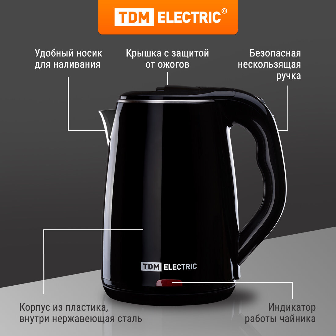 TDM ELECTRIC Электрический чайник "Ника", нержавеющая сталь / пластик, 1,8 л, 1800 Вт, черный, TDM