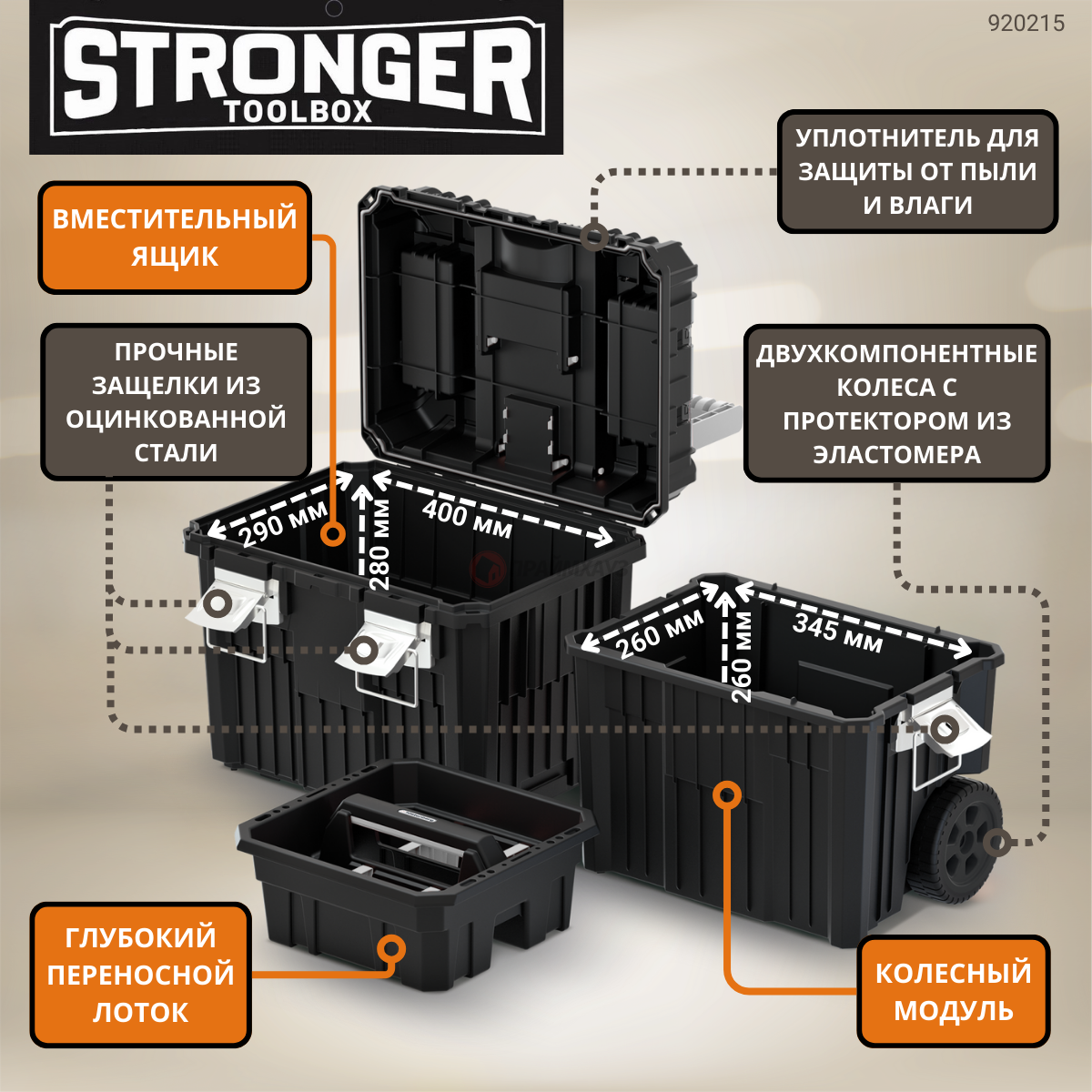 Ящик на колесах для хранения инструментов Stronger Titan, большой, модульный, 2 секции, 45 x 36 x 64 см информация: