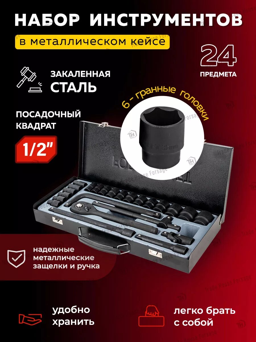 FORCEKRAFT FK62125MPB Набор инструментов ударных 21 пр, 3/4, 6гр: 17,19,21,22,24,27,30,32,34,35,36,36 мм, 12 гр: 38,41,46,50 мм, в метал. кейсе