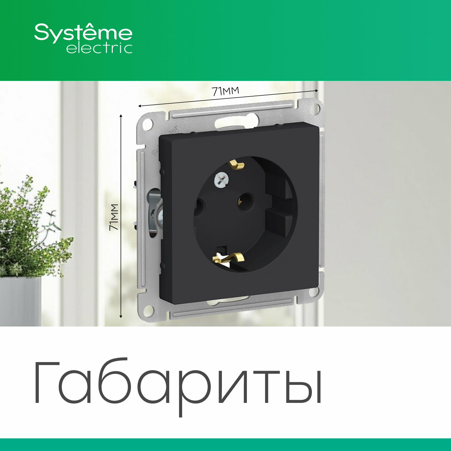 Розетка Systeme Electric "AtlasDesign" ATN001043, с заземляющим контактом цвет: карбон информация: