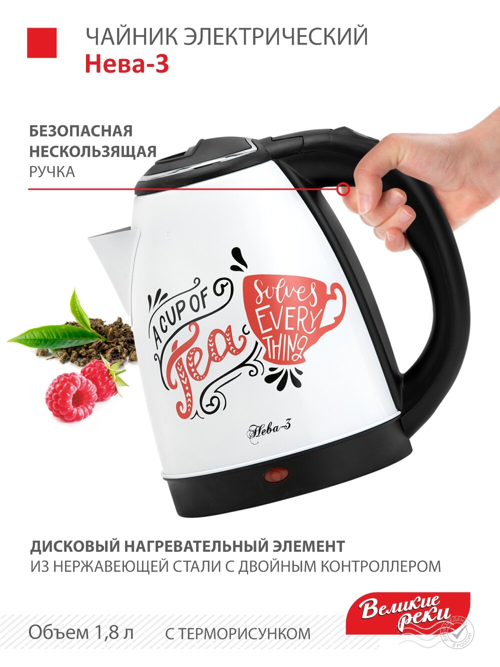 Чайник электрический Великие реки Нева-3 1500Вт, 1,8л с термическим рисунком