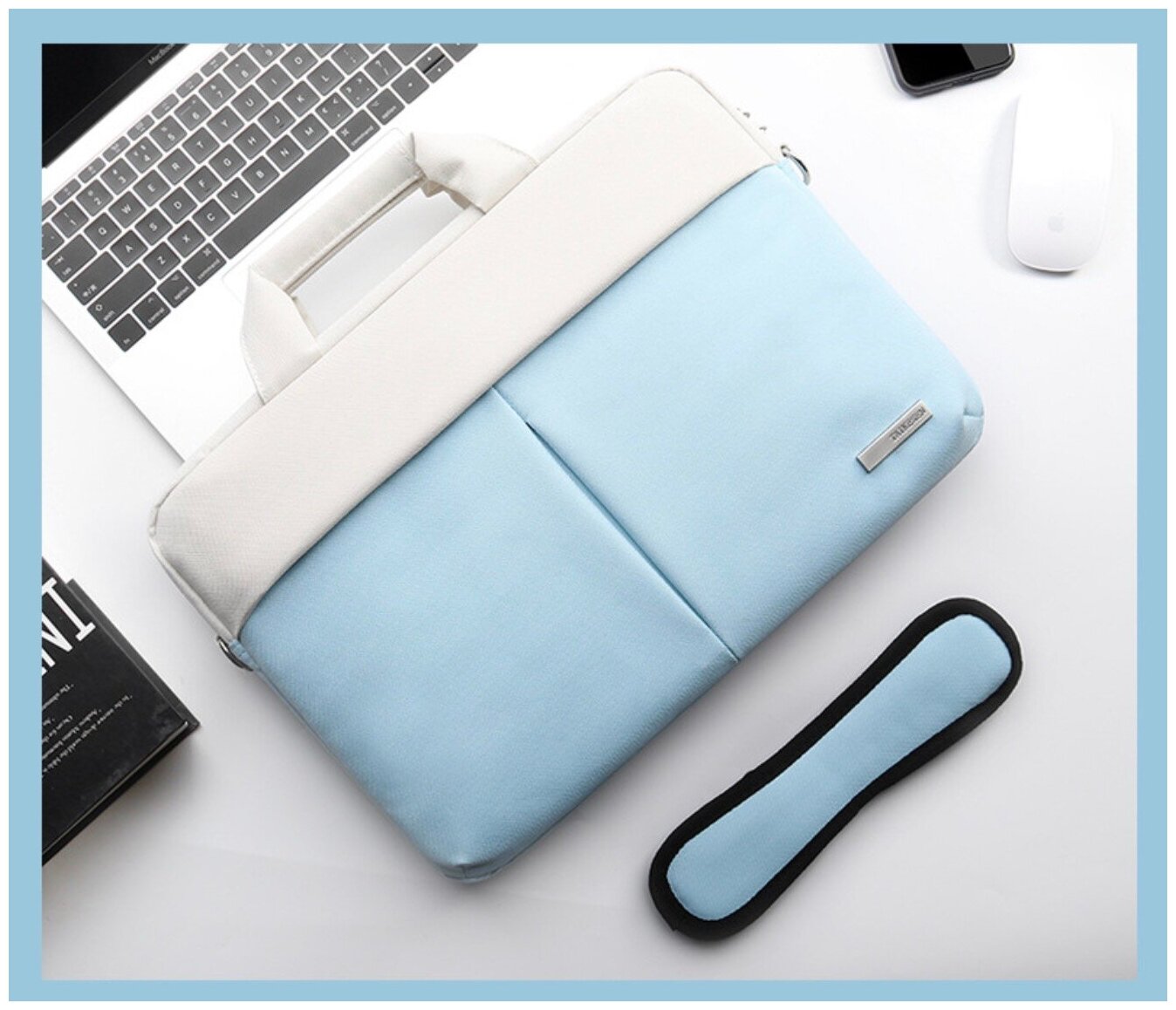 Сумка-портфель MyPad JD21 из качественной импортной хлопковой ткани для ноутбуков Irbis Acer Lenovo Prestigio Xiaomi Digma MSI Macbook 12.5 / 12.6 / 13.3 дюйма вместительная большой емкости корейский современный дизайн женская двухцветная серо-голубого цв