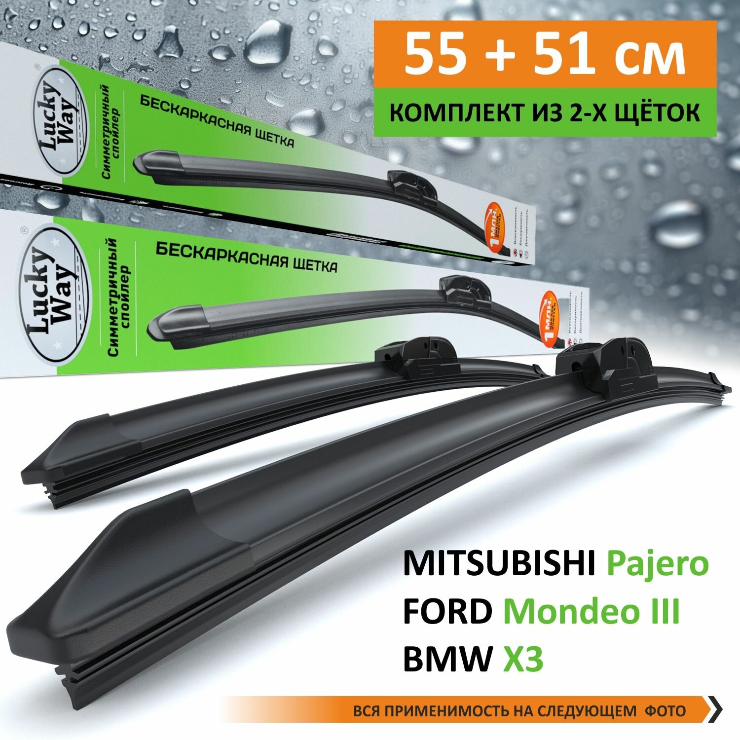 Отзывы на 2 Щетки стеклоочистителя в комплекте (55+51 см), Дворники для автомобиля LuckyWay для MITSUBISHI Pajero 06-Н. В; FORD Mondeo III 00-07; HYUNDAI Santa Fe 99-05; BMW X3 04-10