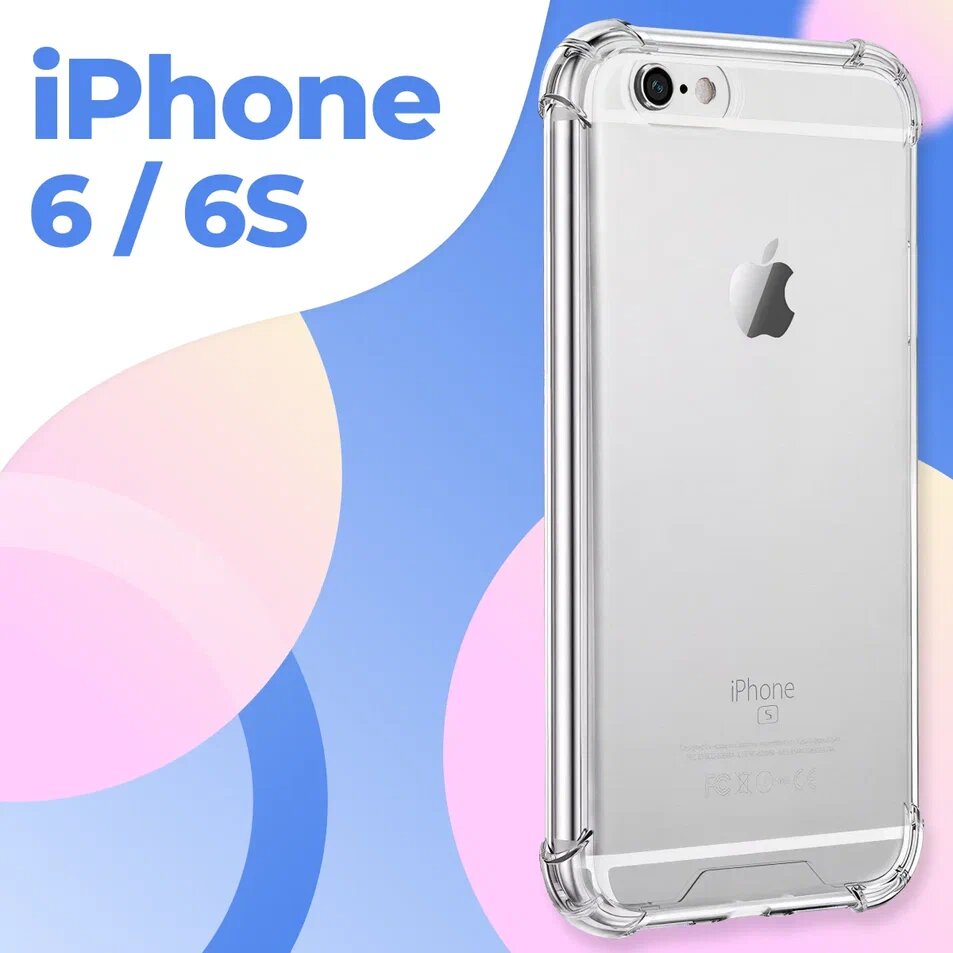 LS Силиконовый прозрачный чехол для Apple iPhone 6 и iPhone 6S с защитой углов/ Противоударный чехол накладка на Эпл Айфон 6 и Айфон 6 Эс