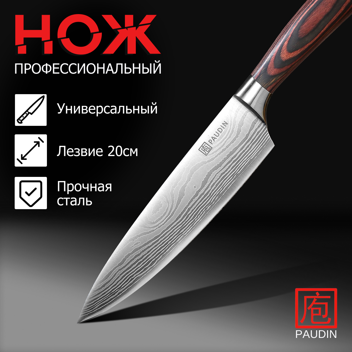 PAUDIN Pro Нож кухонный поварской профессиональный лезвие 20 см