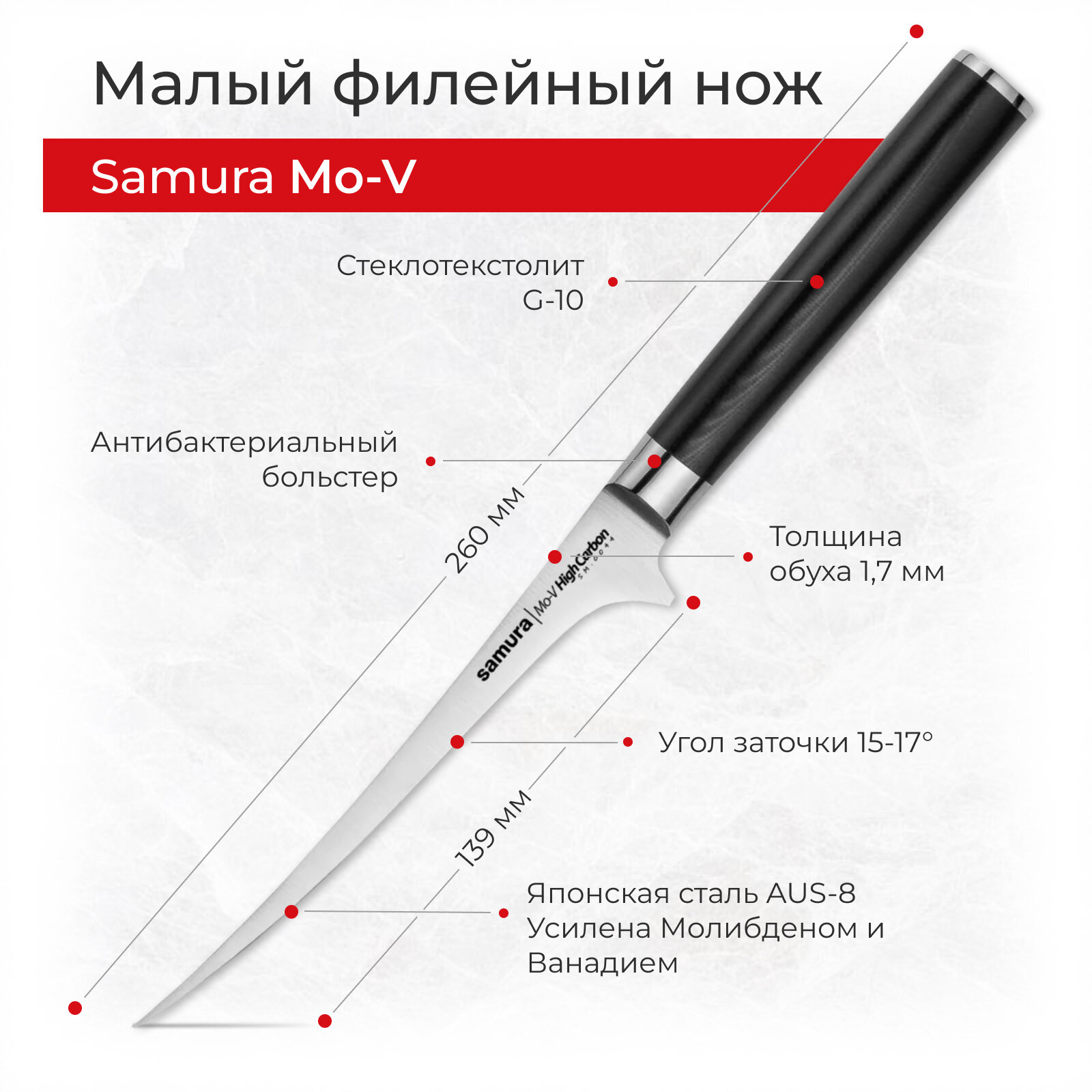 Нож кухонный поварской Samura Mo-V малый филейный для нарезки профессиональный SM-0044 информация: