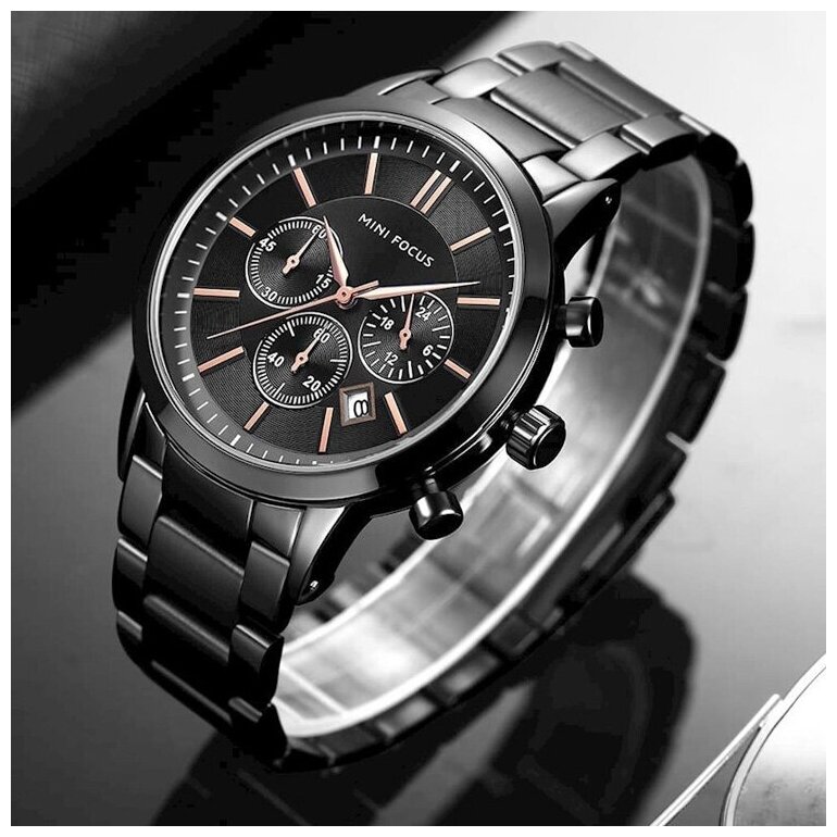 MINI FOCUS Мужские классические водонепроницаемые MF0403G S/B круглые с секундомером