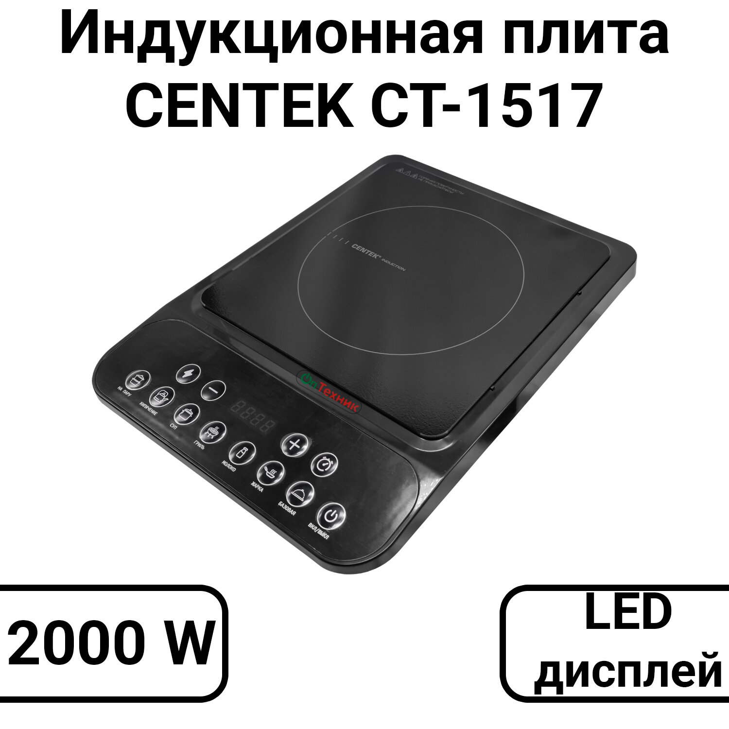 Индукционная плита CENTEK CT-1517, Черная, 2000Вт, 1 конфорка, LED-дисплей, таймер, 8 мощностей, 7 программ информация: