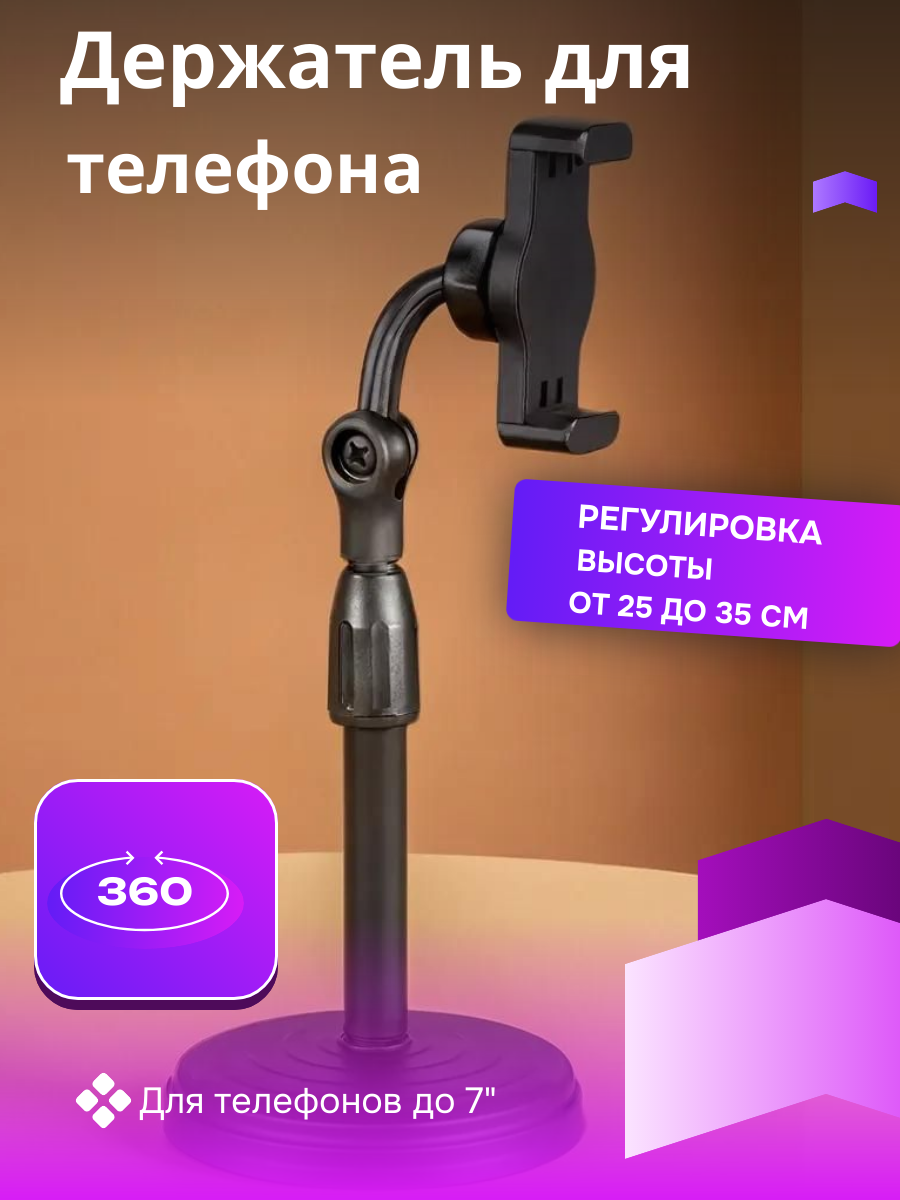 Штатив для телефона настольный / универсальная настольная стойка с держателем для смартфонов и микрофонов / поворотный 360