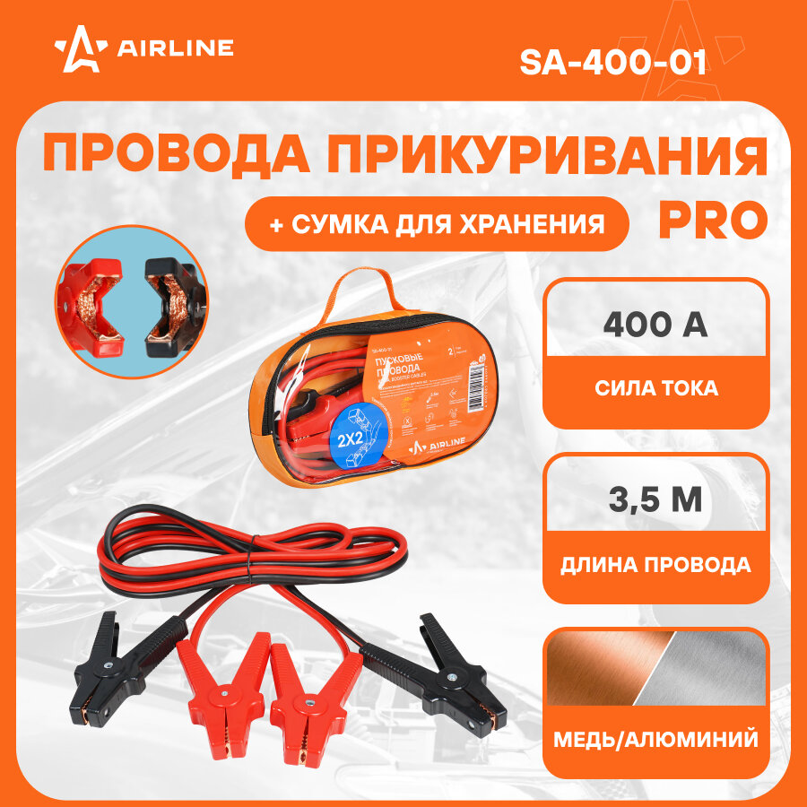 Провода прикуривания 400А PRO (3,5м, 12/24В, сумка) SA-400-01 AIRLINE информация: