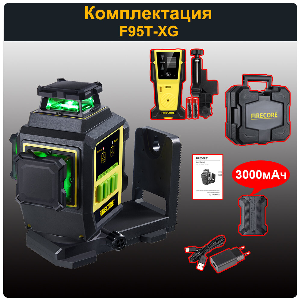 Лазерный уровень/нивелир FIRECORE F95T-XG 12 Линий, Зеленый луч, чемодан, с встроенным L-образным магнитным кронштейном, с приемником FD30 информация: