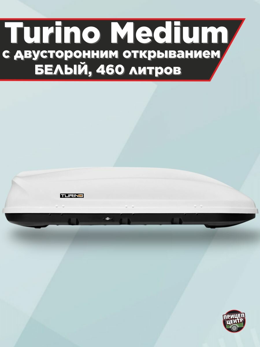 Бокс-багажник (Автобокс) на крышу Аэродинамический "Turino Medium-LUX DUO" 460 л двухсторонний, белый глянцевый.