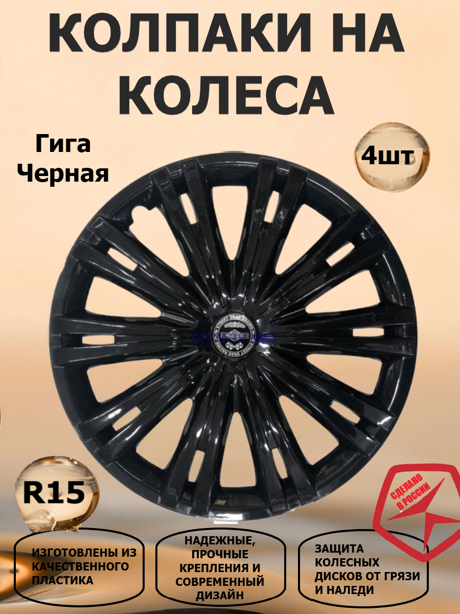 Колпаки на колеса STAR R15 Гига, цвет черный, 4 штуки в комплекте информация: