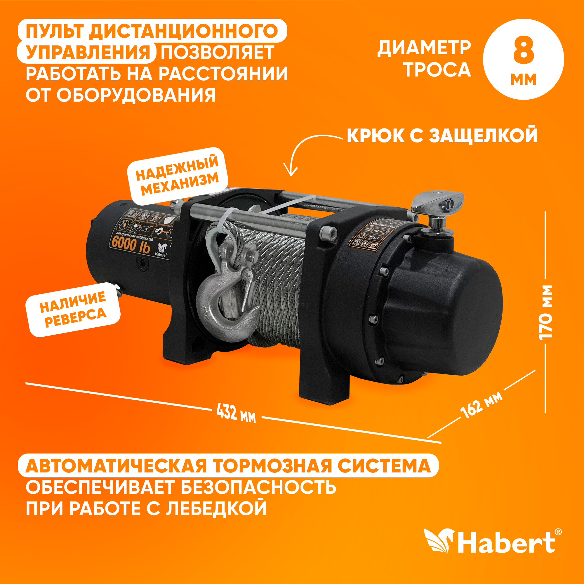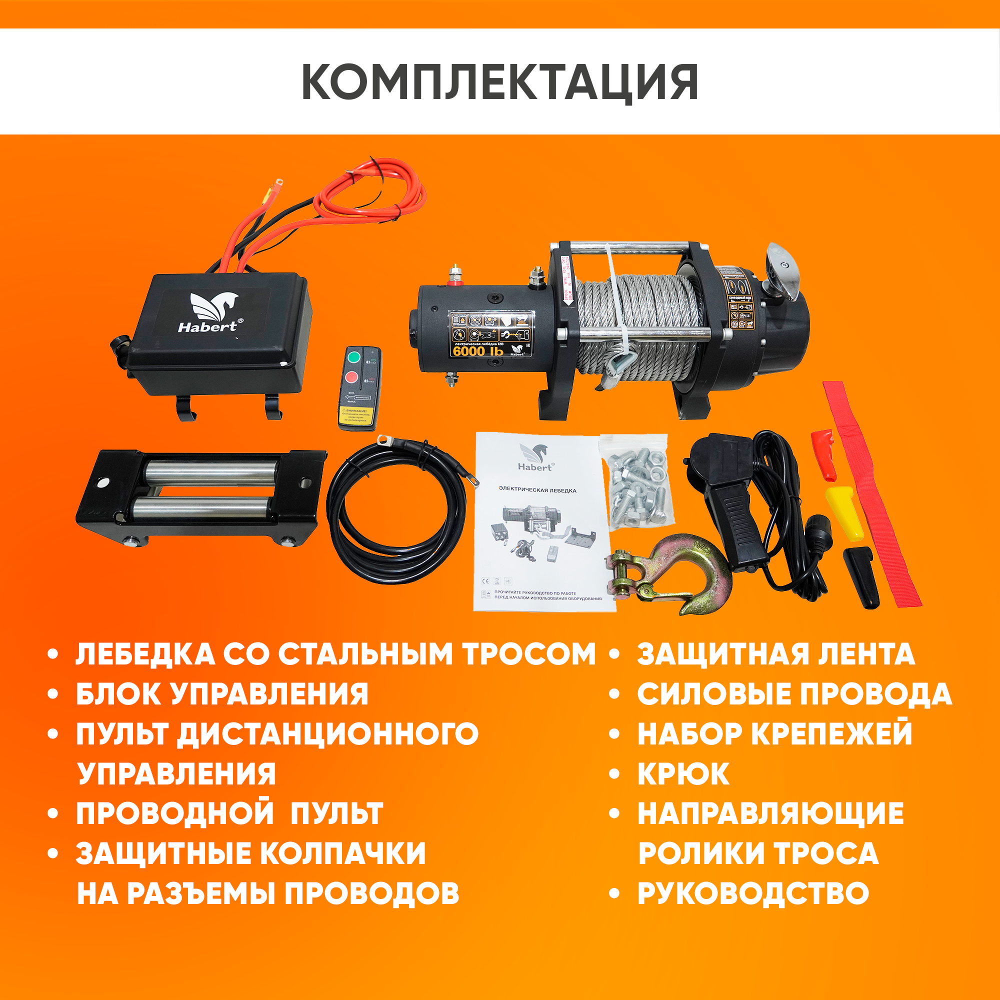 Лебедка электрическая Habert 6000LB стальной трос 3,3 кВт/4,4 л. с. информация: