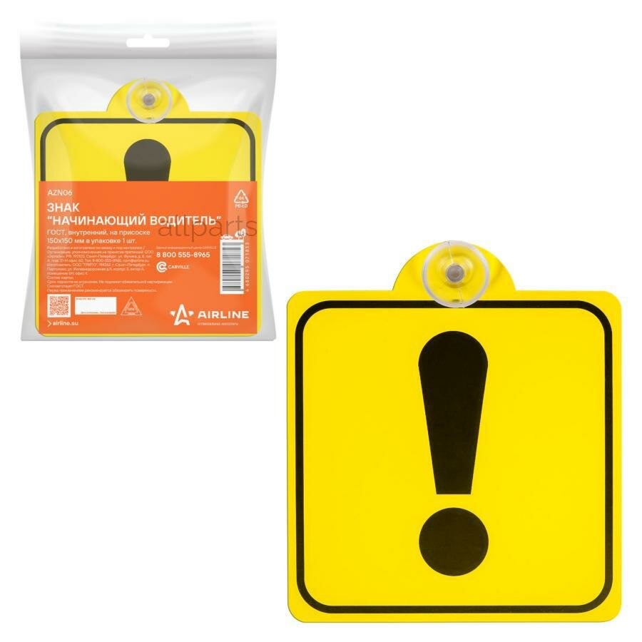 AIRLINE AZN06 знак! 'начинающий водитель', гост, внутренний, на присоске 150х150мм, в уп. 1шт.\ информация: