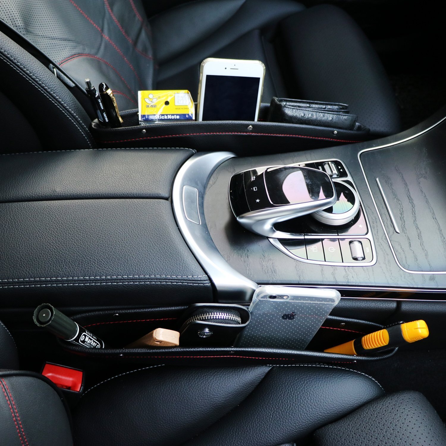Отзывы на Органайзеры в машину 2шт. Черные с красной нитью, между сидениями / кармашки заглушки для мелочей из Premium экокожи, для хранения документов, защищает от проваливания предметов под кресло