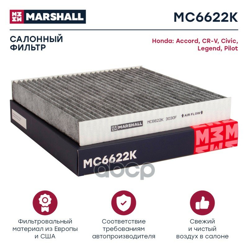 Фильтр Салонный Угольный Honda Accord Vii, Viii 03- / Civic Viii, Ix 06- / Cr-V Iii, Iv 06- () MARSHALL арт. MC6622K