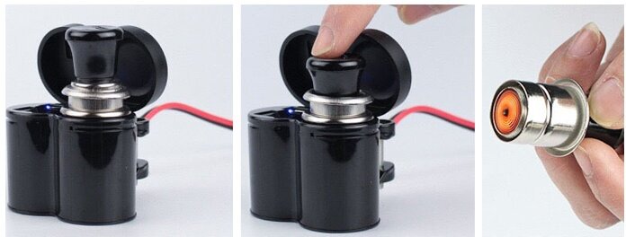 Отзывы на Зарядное устройство с тумблером на руль мотоцикла, USB, гнездо и электронная зажигалка прикуривателя, провод 130 см