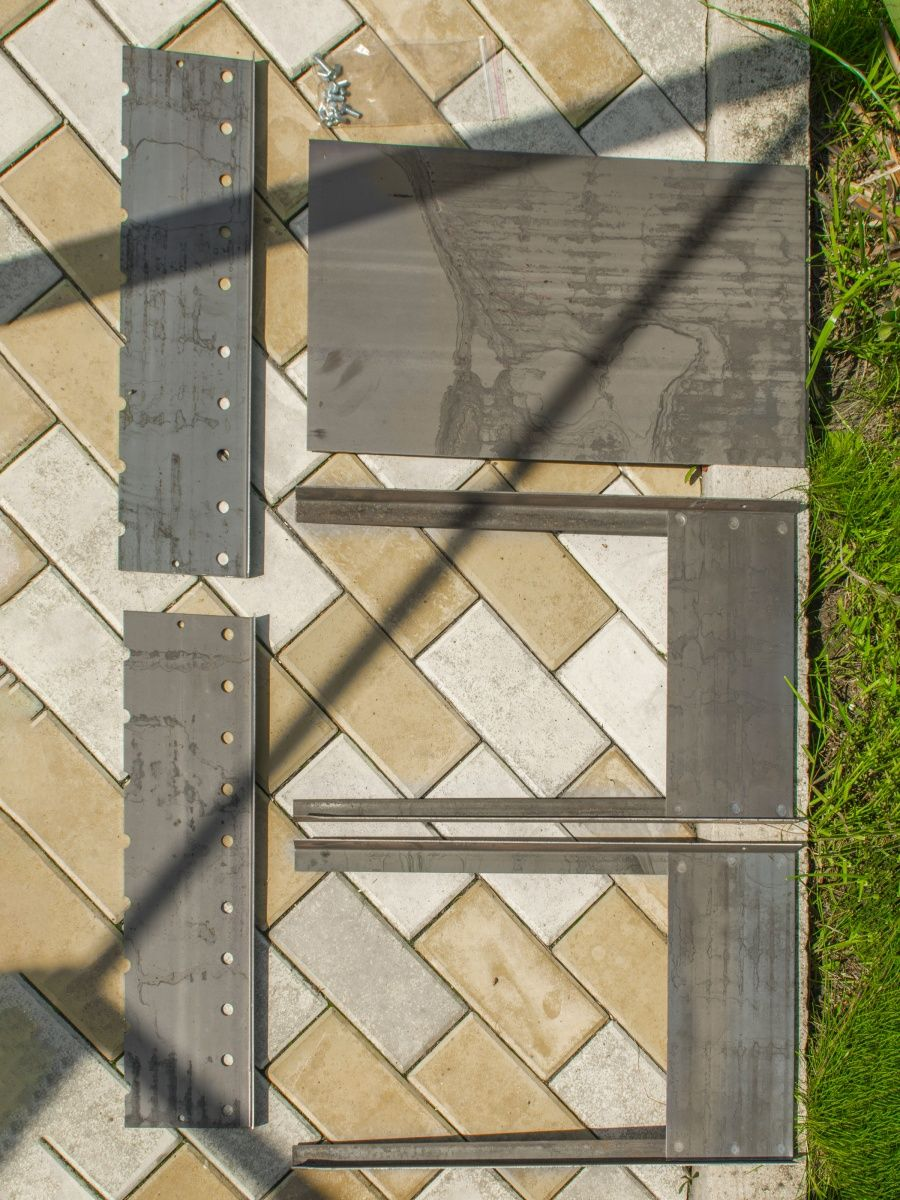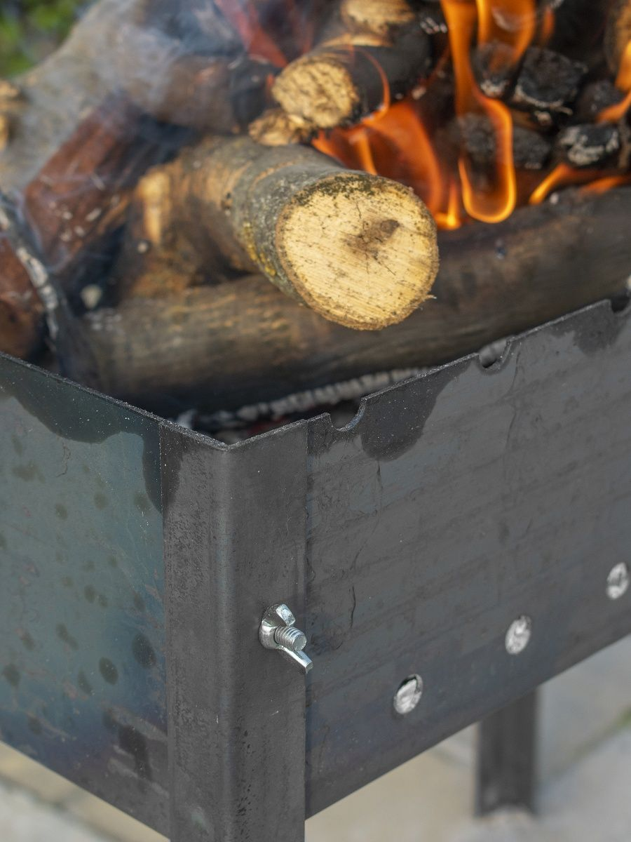 Мангал 800 мм. с полкой-решёткой и полкой под казан, сталь рифленая-усиленная 3 мм. разборный, с полкой под дрова