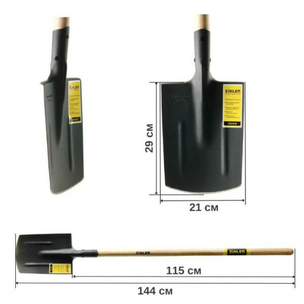 Лопата ZINLER Лопата штыковая прямоугольная с деревянным черенком 1200 мм