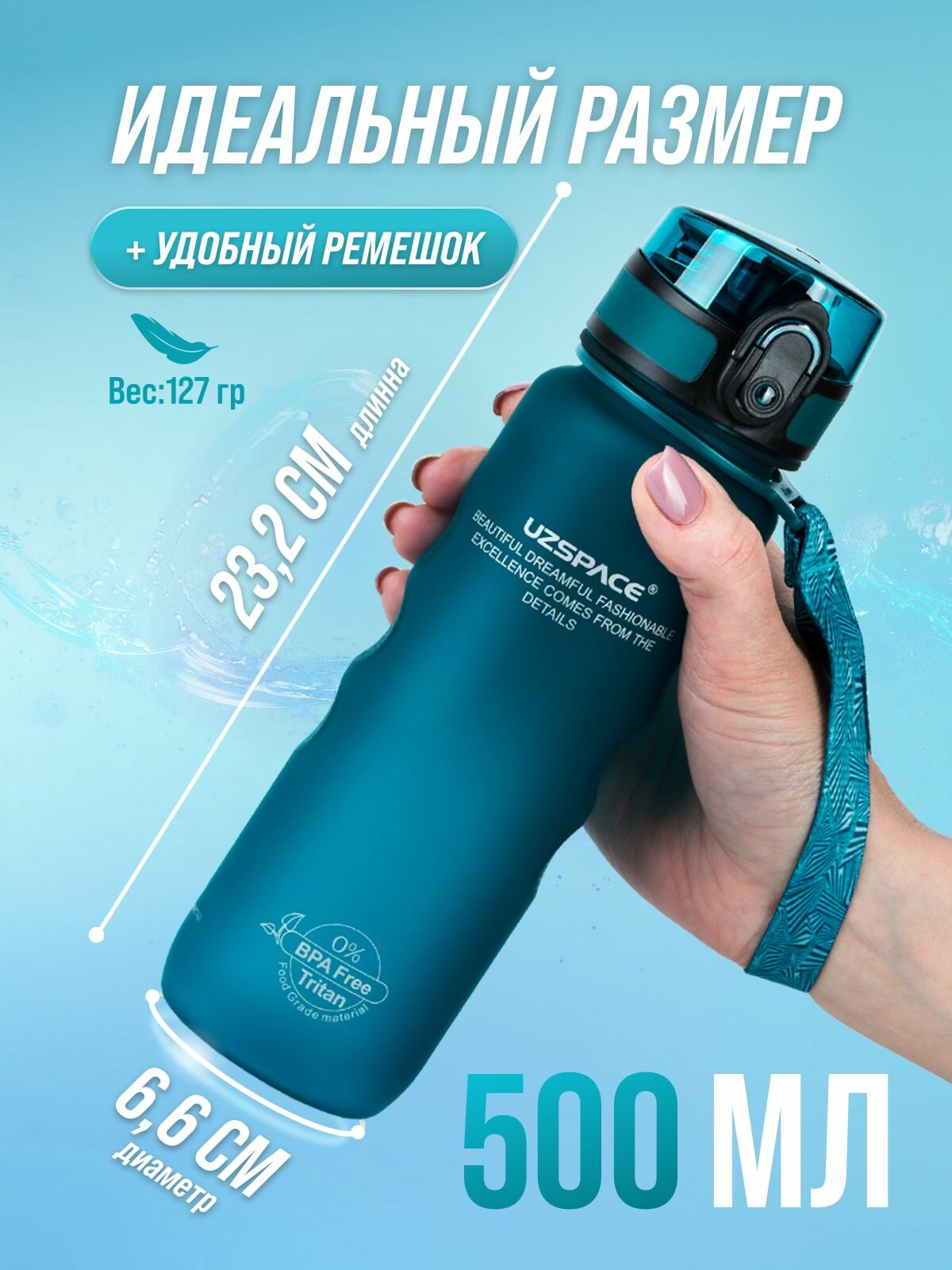 10 цен на Бутылка для воды спортивная UZSPACE - из Тритана, с трубочкой, бирюзовая, 500 мл, с герметичной крышкой, BPA Free, для спорта и фитнеса, детская в школу