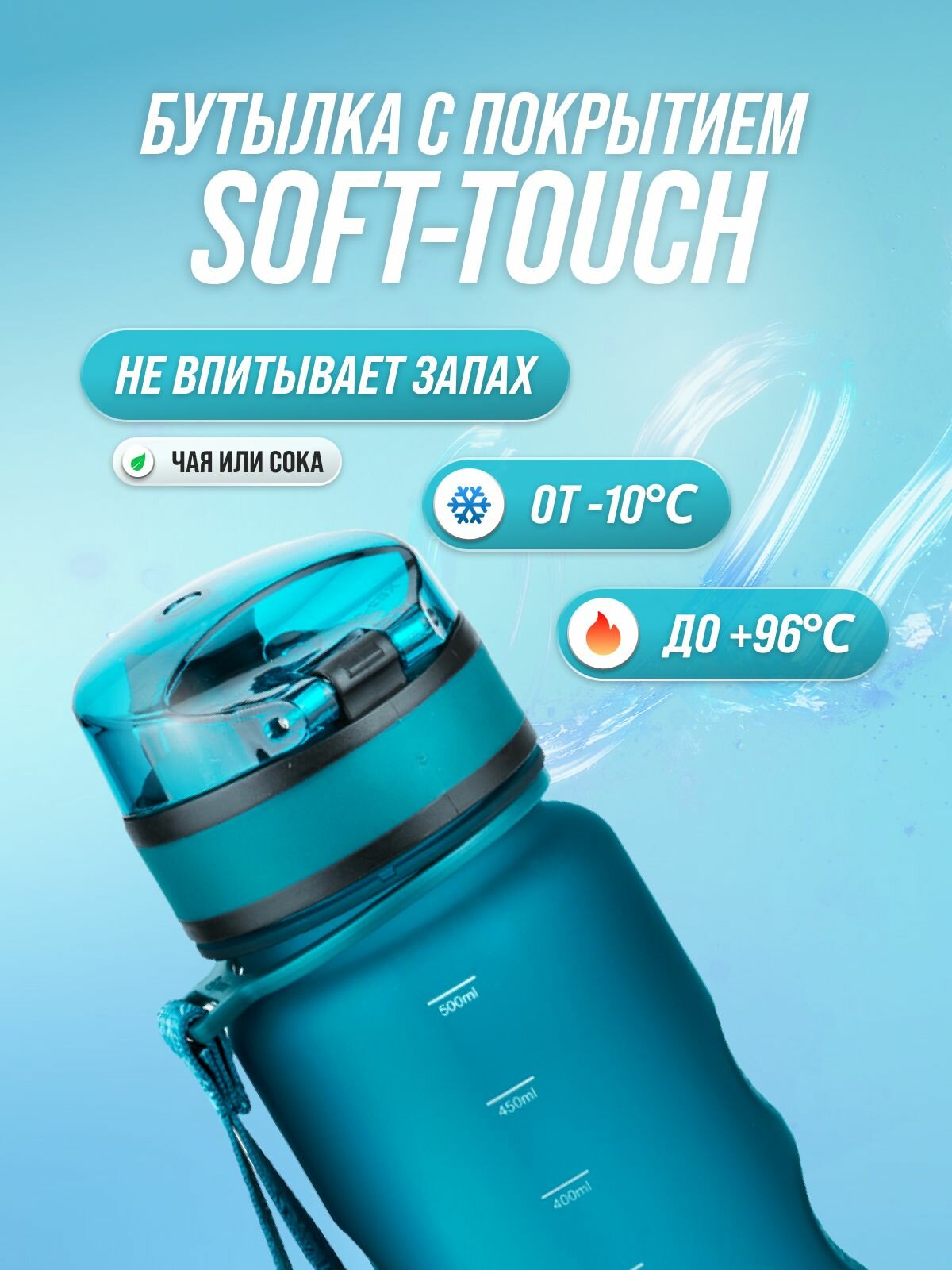 Отзывы на Бутылка для воды спортивная UZSPACE - из Тритана, с трубочкой, бирюзовая, 500 мл, с герметичной крышкой, BPA Free, для спорта и фитнеса, детская в школу