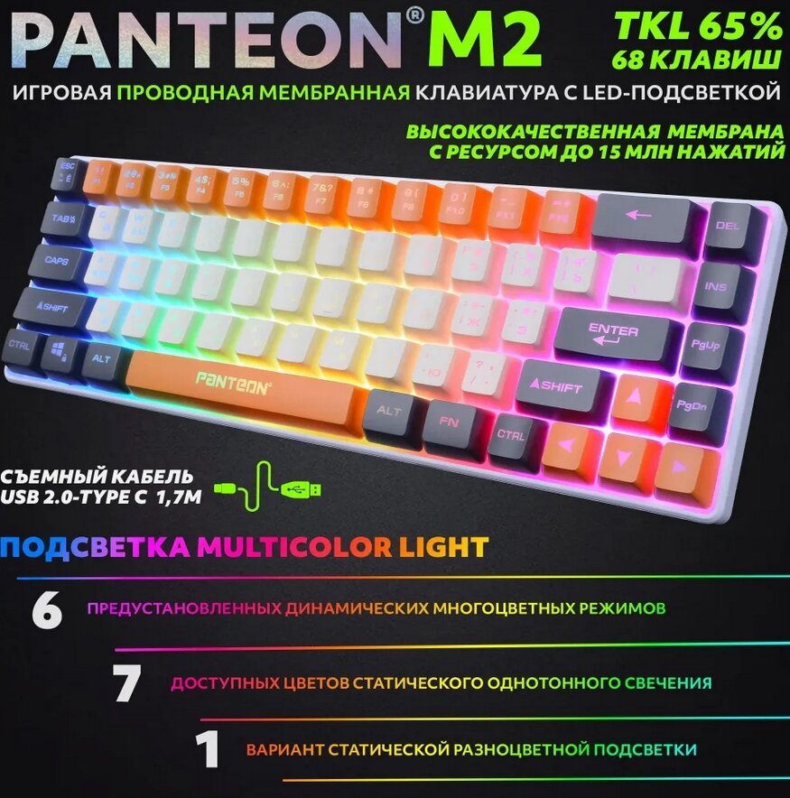 PANTEON M2 Ivory-Grey(01) Игровая мембранная TKL (65%) клавиатура с LED-подсветкой MULTICOLOR (68 кл, USB), цвет: слоновая кость-серый (01) информация: