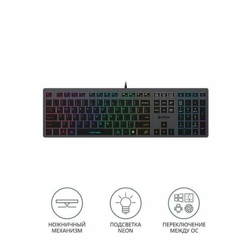 Клавиатура A4Tech Fstyler FX60 серый USB slim LED (FX60 GREY / NEON)
