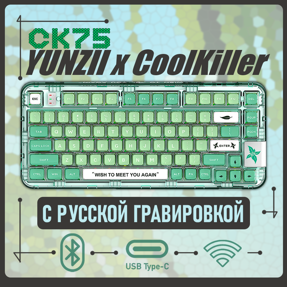 10 цен на YUNZII x CoolKiller CK75 Игровая клавиатура беспроводная. Зеленая. Английская раскладка.