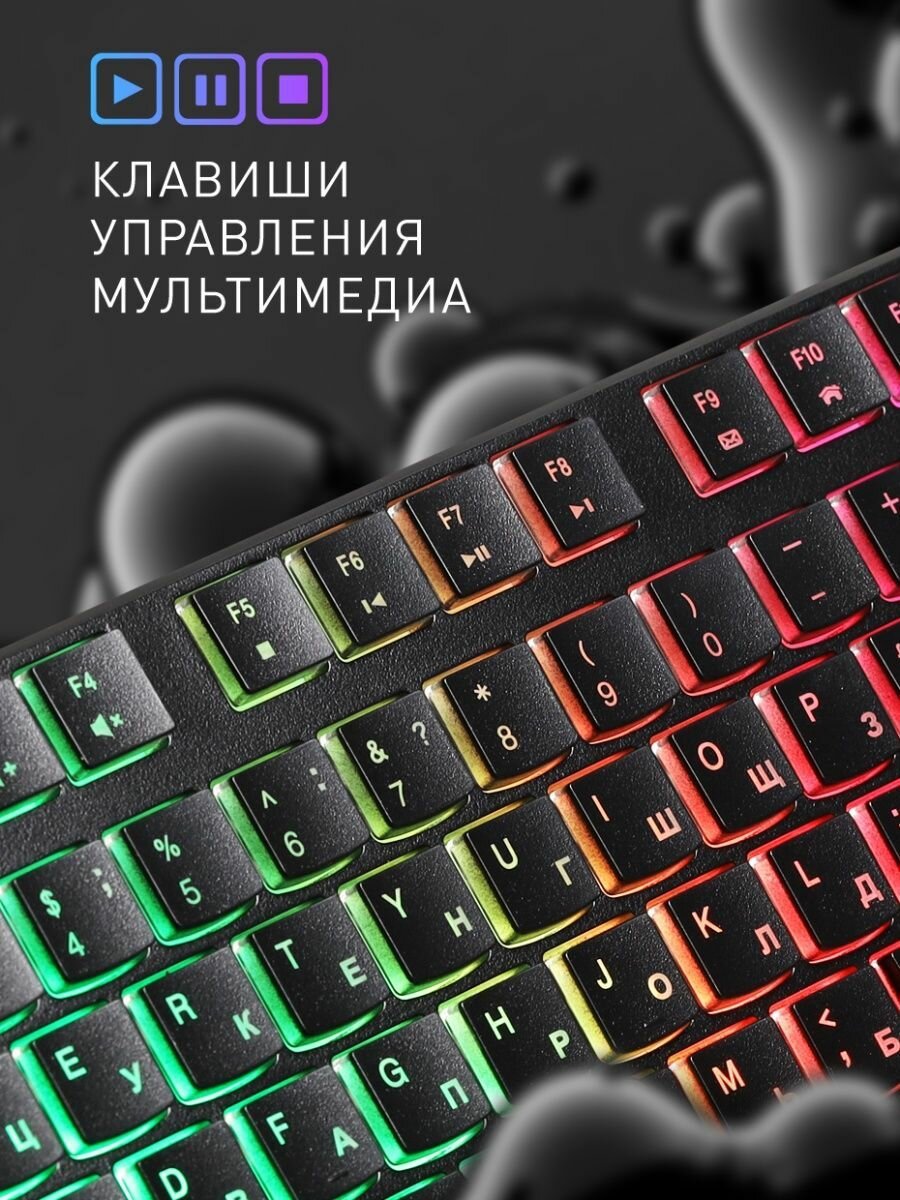 Клавиатура проводная Smartbuy, с подсветка Rainbow, 104 клавиши, черная информация:
