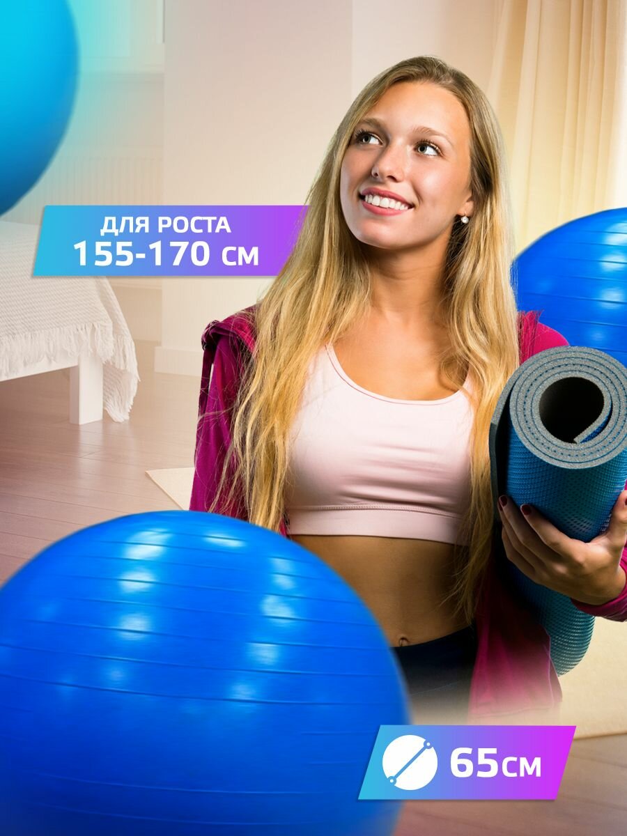 Отзывы на Фитбол 65 см с насосом антивзрыв, гимнастический мяч для фитнеса, пилатеса и йоги. Шар для взрослых, беременных, новорожденных грудничков