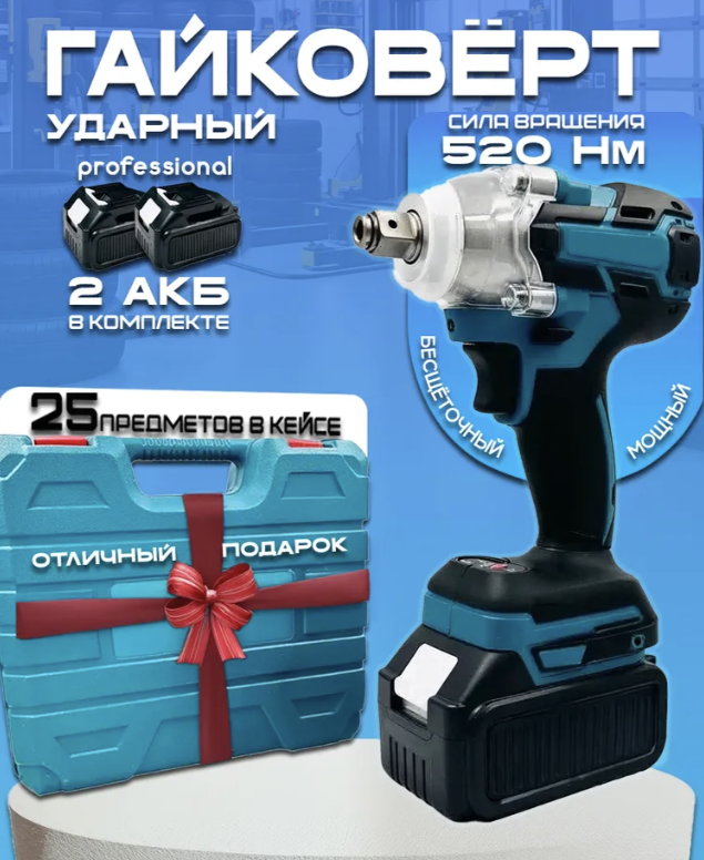 Аккумуляторный гайковерт 21v с 2Акб информация: