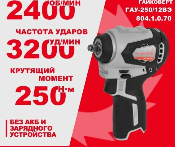 Гайковерт аккумуляторный ударный ИНТЕРСКОЛ ГАУ-250/12ВЭ бесщеточный АПИ-Т (картон, без АКБ и ЗУ) информация:
