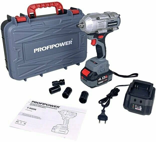 Аккумуляторный гайковерт бесщеточный ударный ProfiPower T-900N (Li-ion-1шт, 4.0Ач, 900Нм, ударная головка 17/19/21мм, З/У, в кейсе)