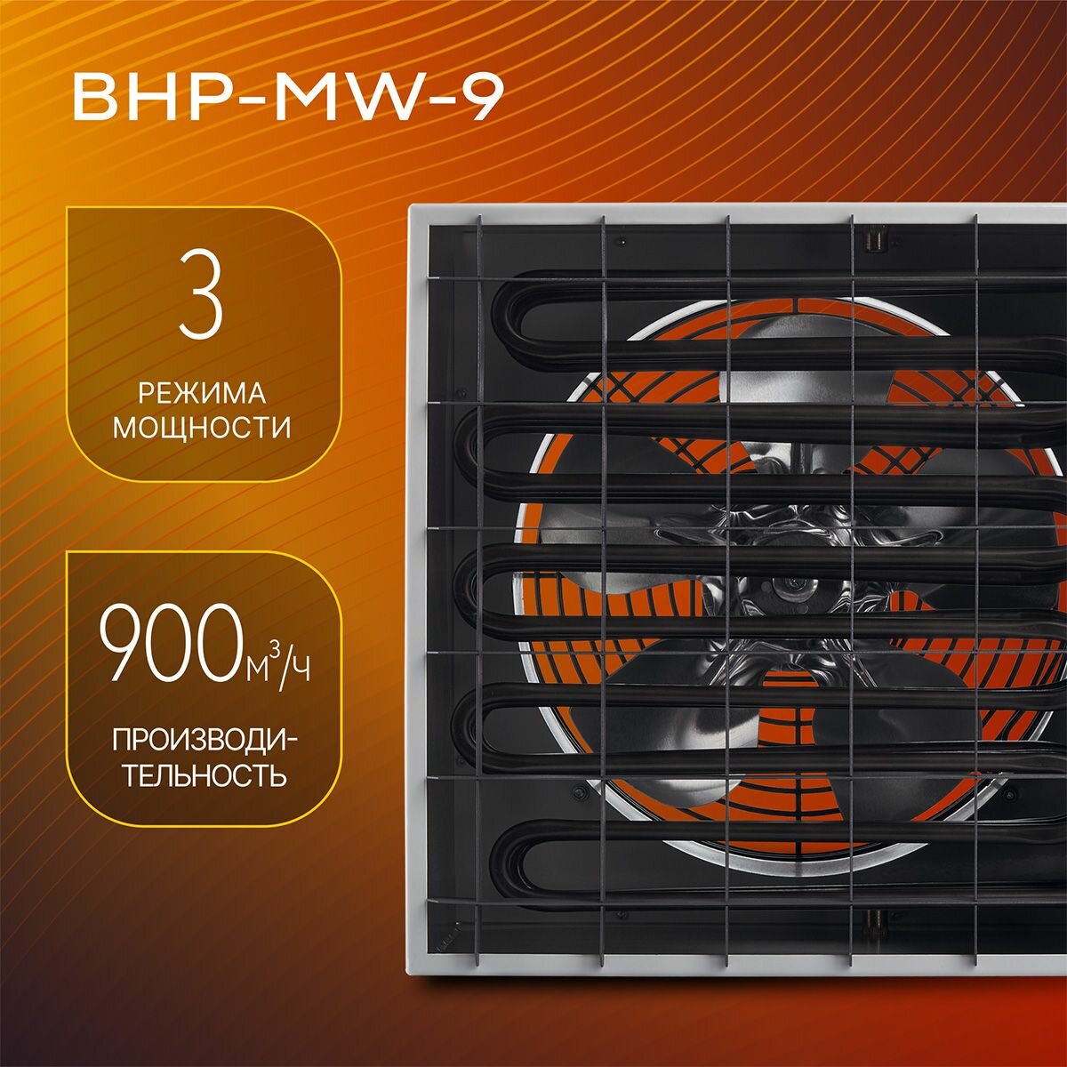 Тепловентилятор Ballu BHP-MW-9, 9кВт, с термостатом, площадь до 100м², расход до 900м³/час информация: