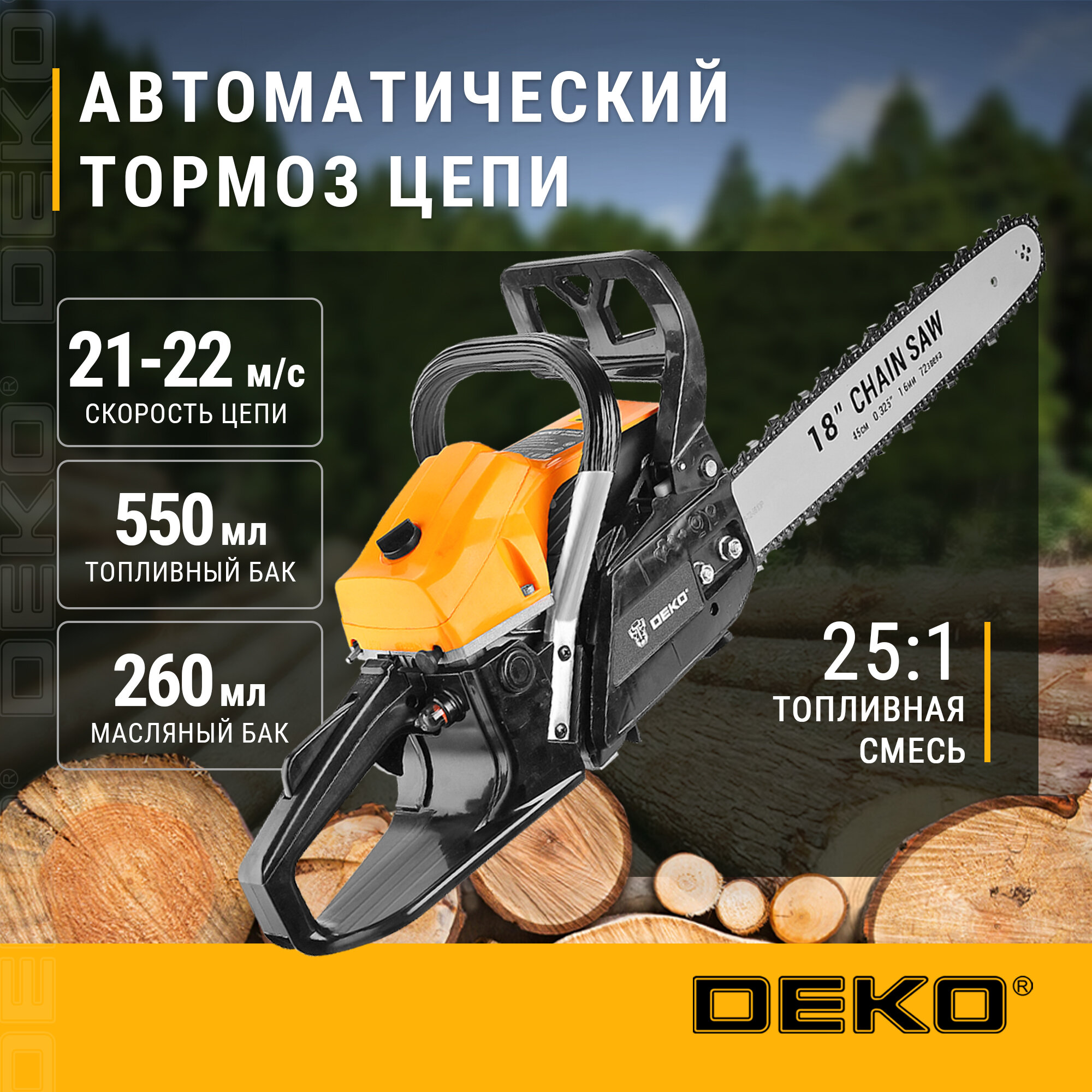 10 цен на Бензопила DEKO DKCHS 52-18, 3,8 л. с, 52 куб. см, 18", тормоз цепи