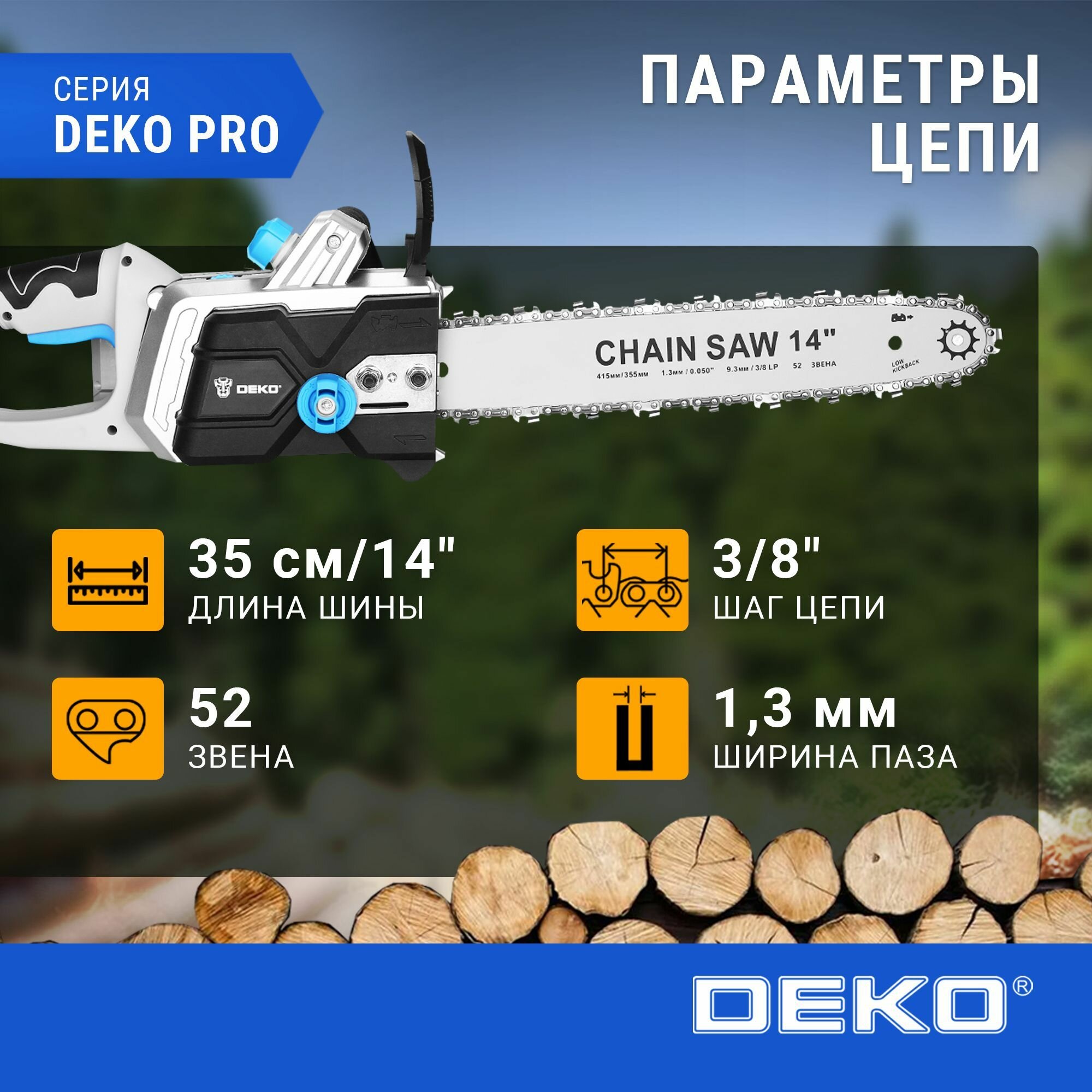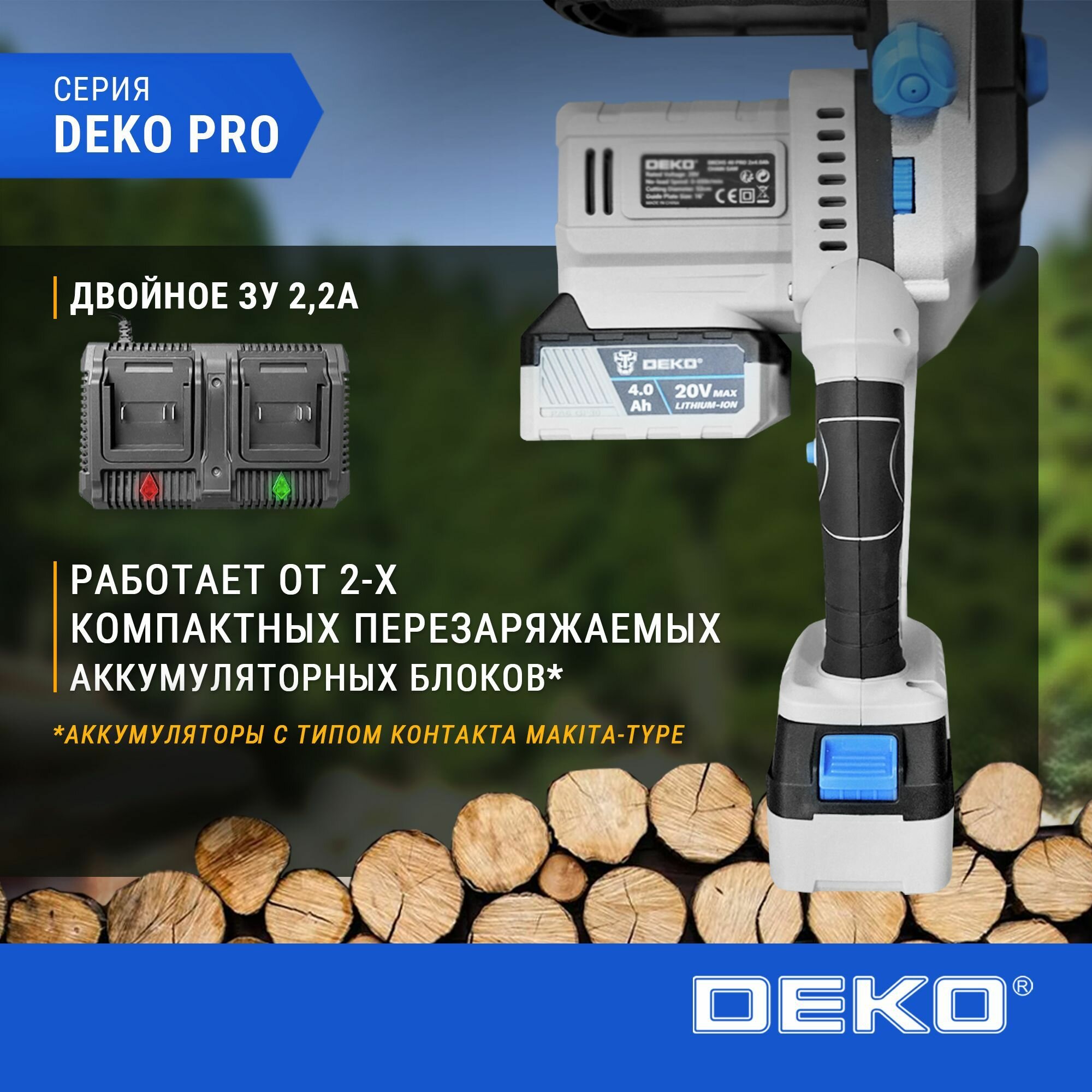 Отзывы на Пила цепная аккумуляторная бесщеточная DEKO DKCHS 40 PRO, 14", 2х20В, 2x4.0Ач, двойное з/у