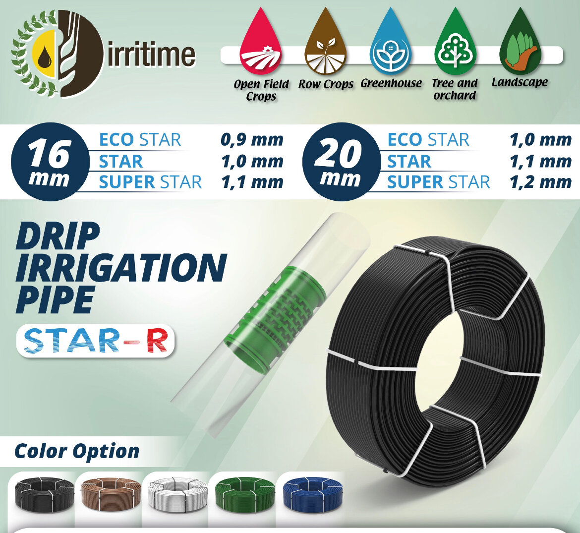 Irritime Капельная трубка (капельный полив) - 16 мм ( шаг 20 см ) 10 литров в час на 1 метр погонный ( Бухта 25 м)