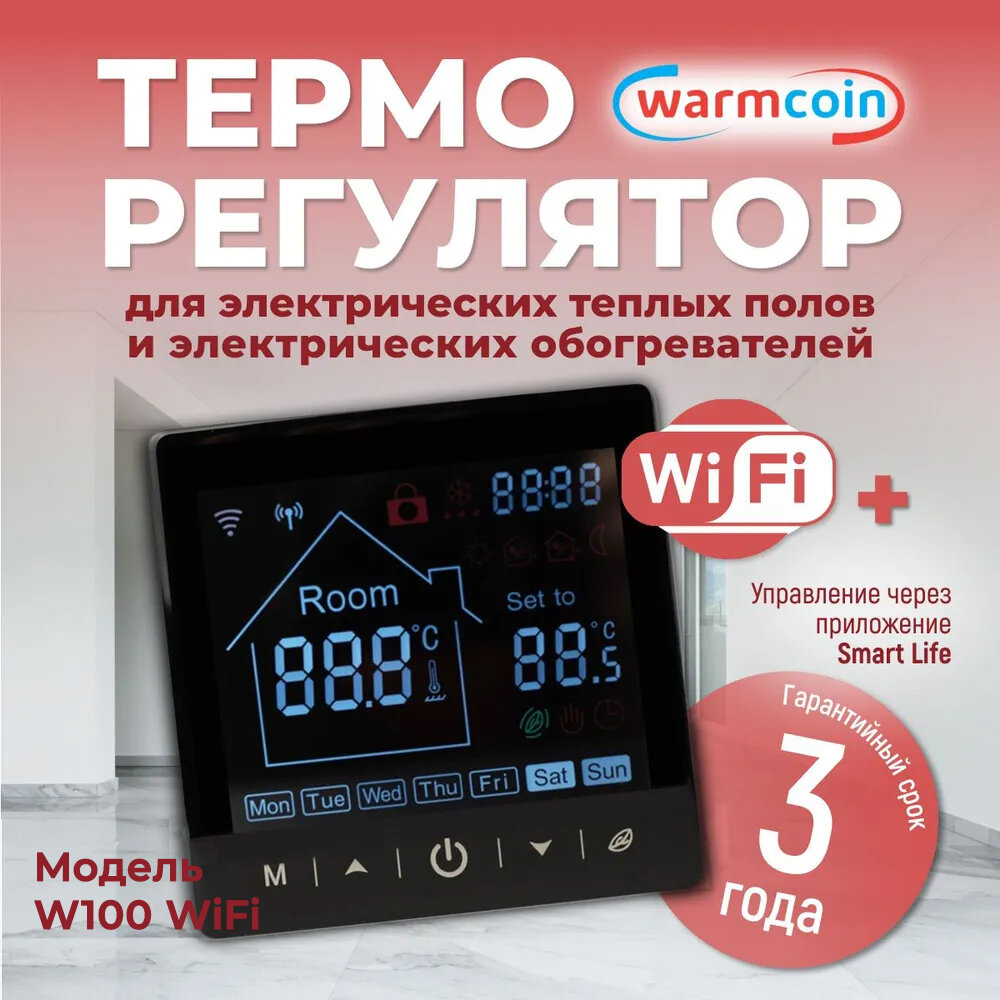 Терморегулятор/термостат для теплого пола программируемый W100 WI-FI черный. информация: