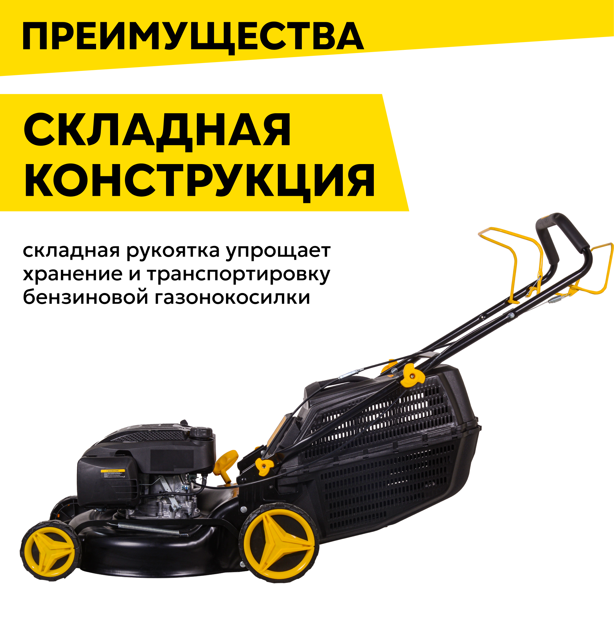 | Дополнительные функции | антивибрационная система / возможность установки мульчирующей насадки / регулировка высоты скашивания / тормоз двигателя |