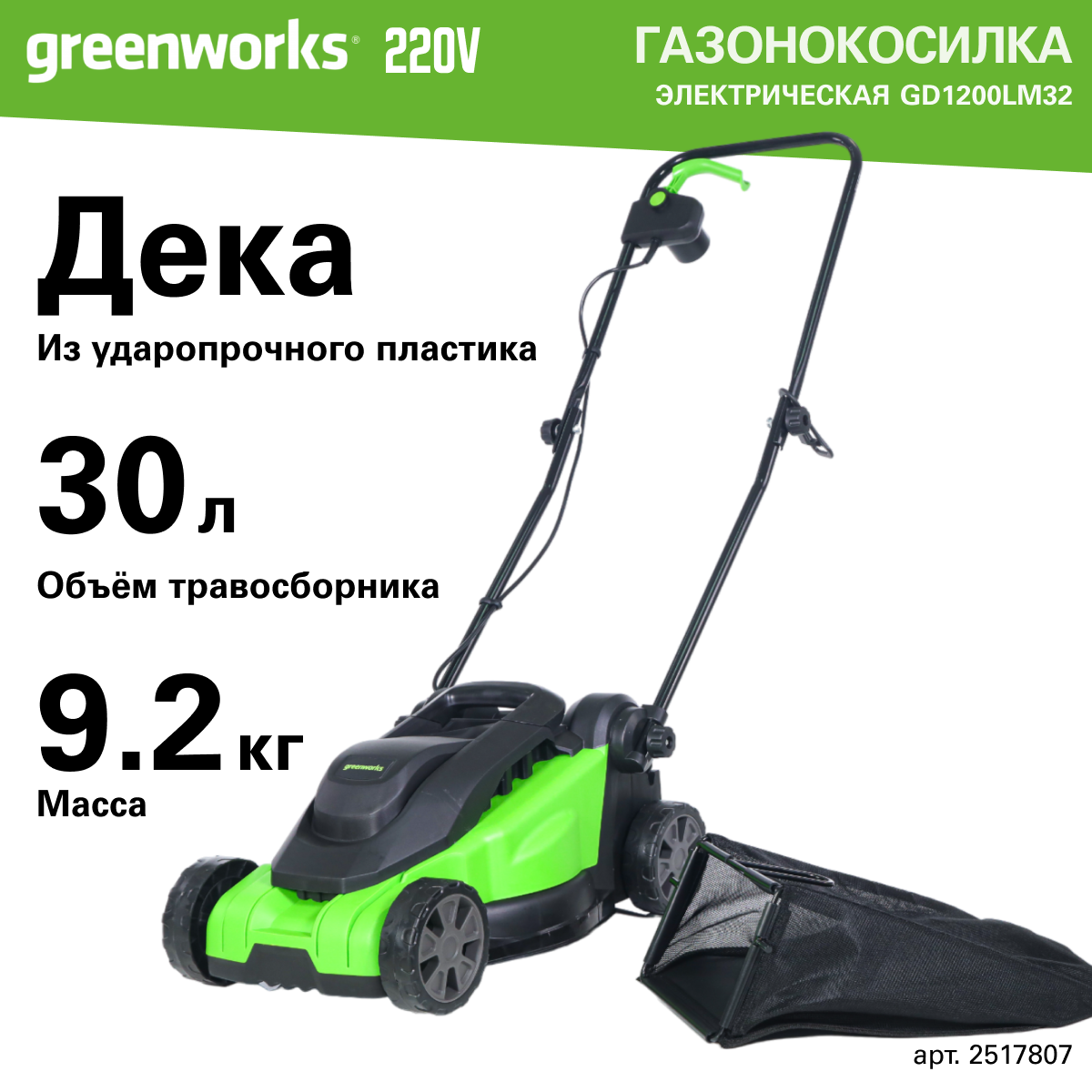 10 цен на Газонокосилка электрическая Greenworks 2517807, 1200 Вт, 32 см