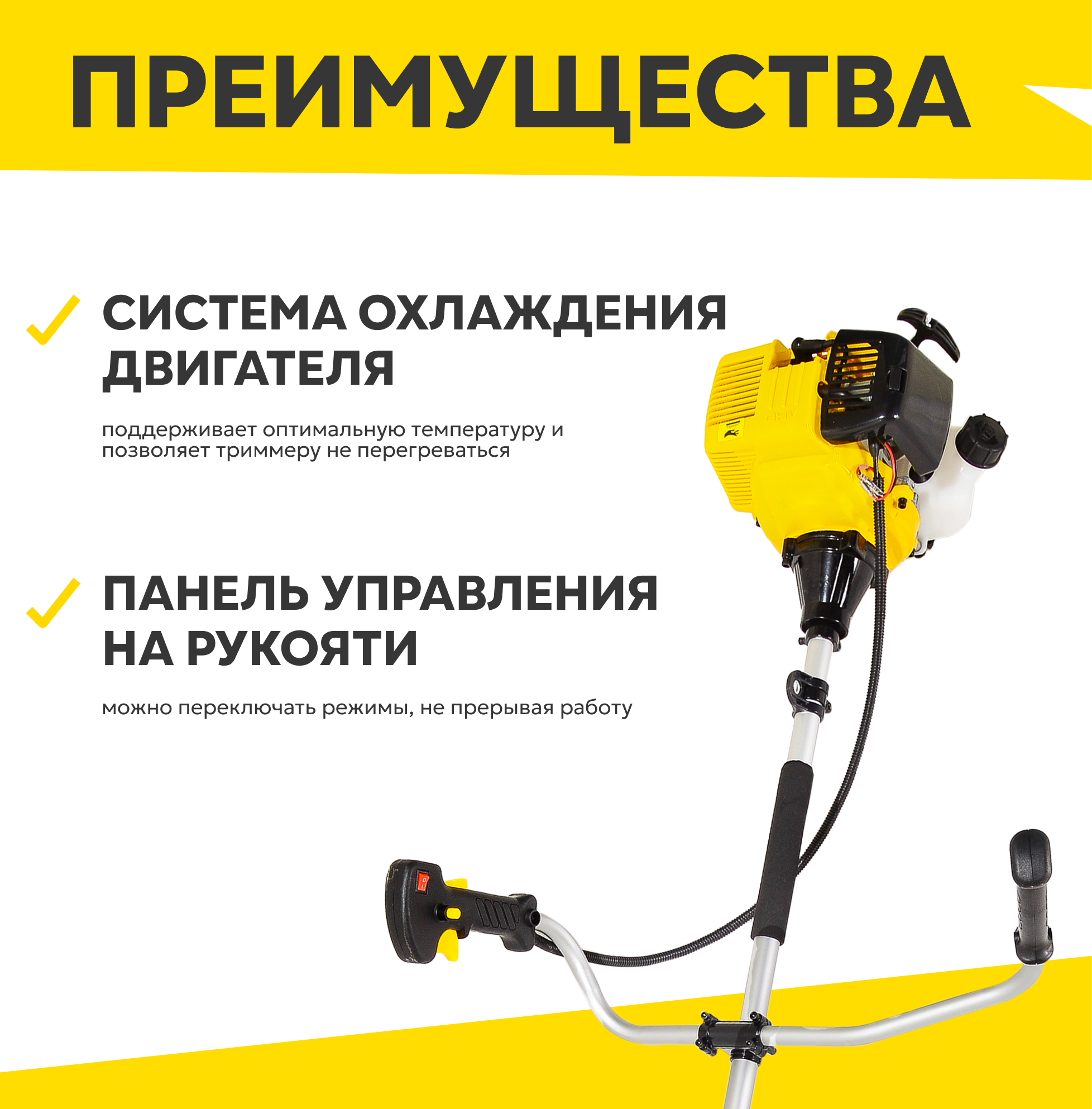 | Конструктивные особенности | складная штанга / Блокировка от случайного включения / Защита от перегрева / Защита от перегрузок / Низкий уровень шума / Плечевой ремень / Электростартер |