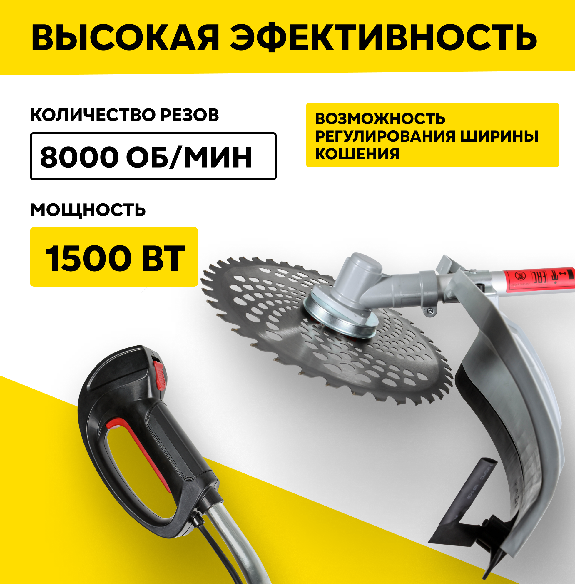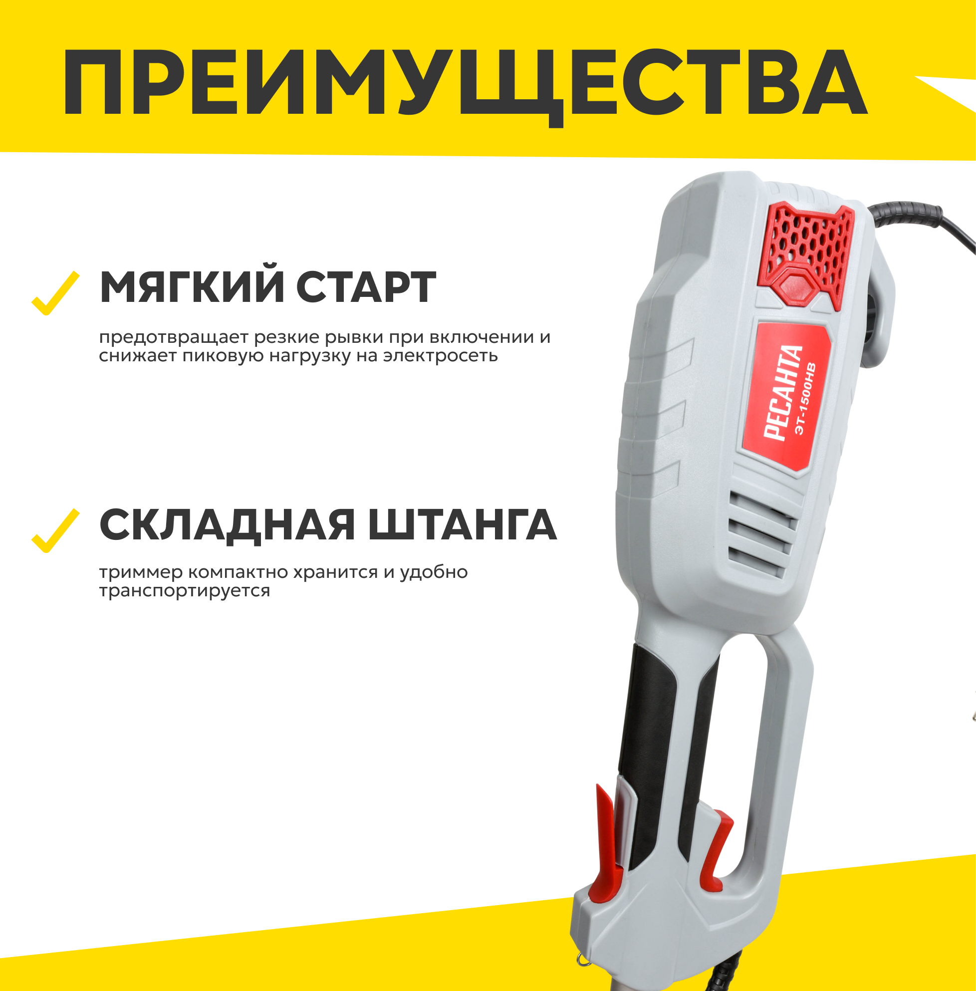 Триммер Ресанта ЭТ-1500НВ, электрический, складной, 1500Вт, режущий элемент леска/нож информация: