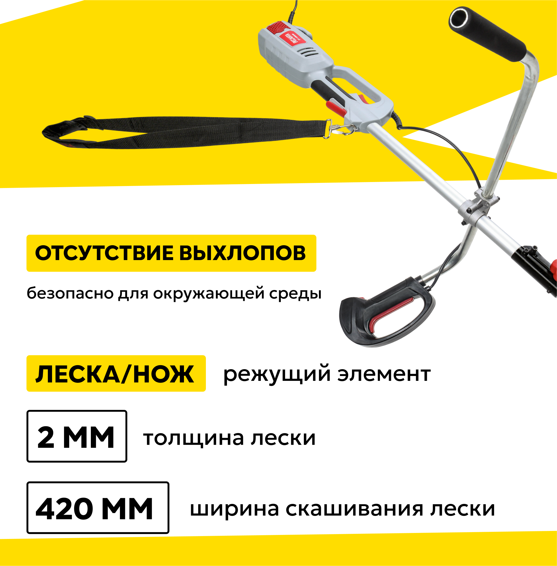 Электрический триммер / электротриммер Ресанта ЭТ-1500НВ (1500 Вт, 8000 об/мин, скашивание леской - 420 мм, ножом - 255 мм, Ø – 2 мм, плавный пуск, велосипедная рукоятка)