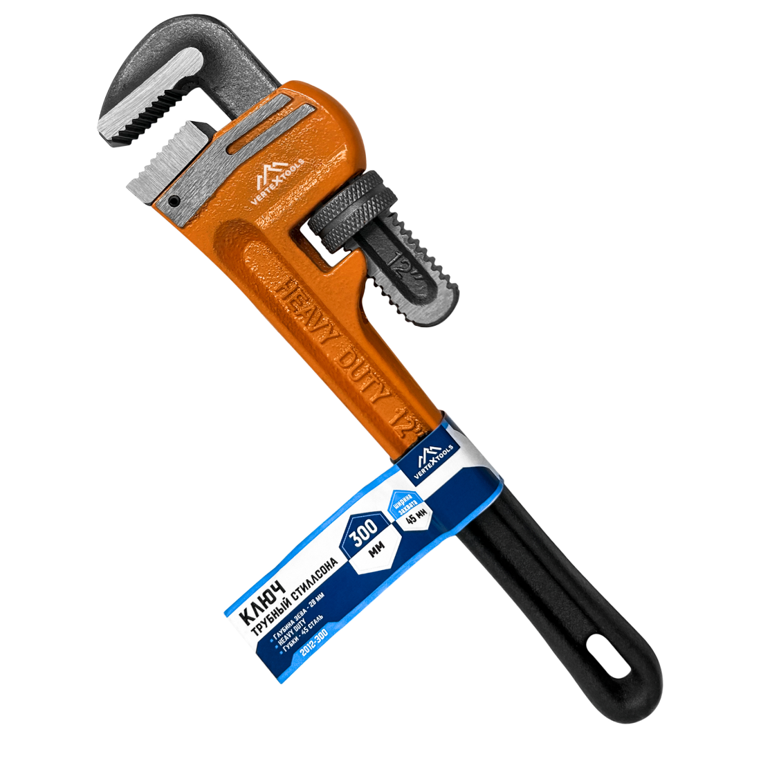 Ключ трубный разводной Стиллсона VertexTools 300 мм, захват 45 мм. информация: