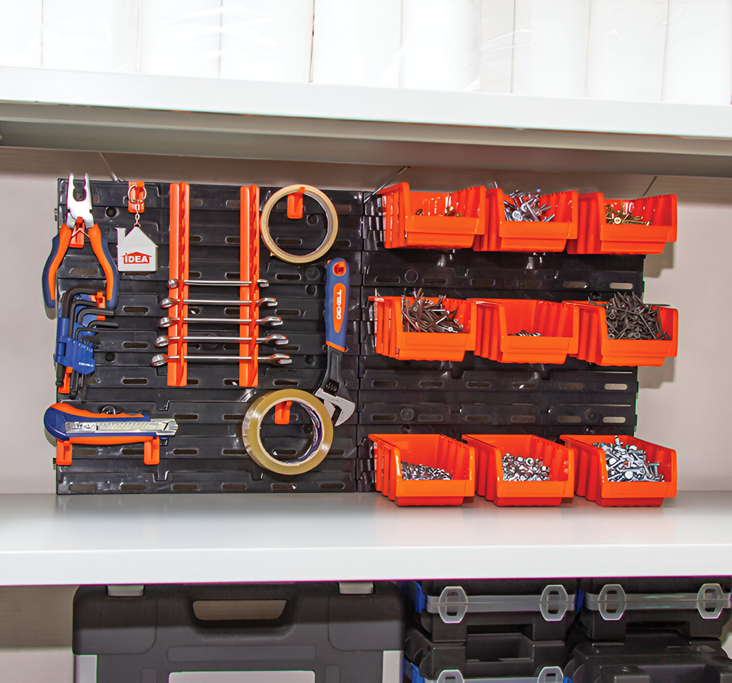 Набор лотков / органайзер настенный для инструментов 740х170х375 мм IDEA, черно - оранжевый