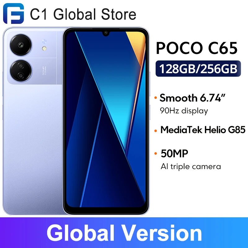 Отзывы на Глобальная версия POCO C65, NFC 128 ГБ/256 ГБ, аккумулятор 5000 мАч, MediaTek Helio G85, тройная камера 50 МП, дисплей 6,74 дюйма, 90 Гц, 8GB 256GB Black, Official Standard