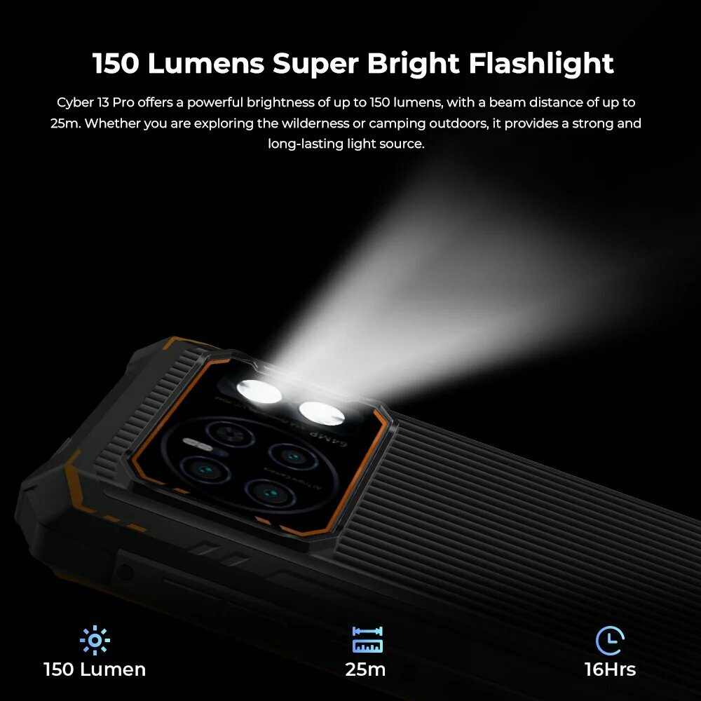 Фонарик HOTWAV Cyber 13 Pro, 20 ГБ + 256 ГБ, 6,6 дюйма, FHD + 2K, 10800 мАч, 20 Вт, быстрая зарядка, 64 мп, Android 13, глобальная версия, Cyber 13 Pro Orange, Global Version