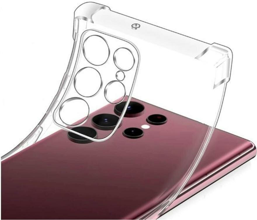 Силиконовый прозрачный чехол Samsung Galaxy S22 Ultra с защитой камеры / Противоударный / с усиленными углами информация: