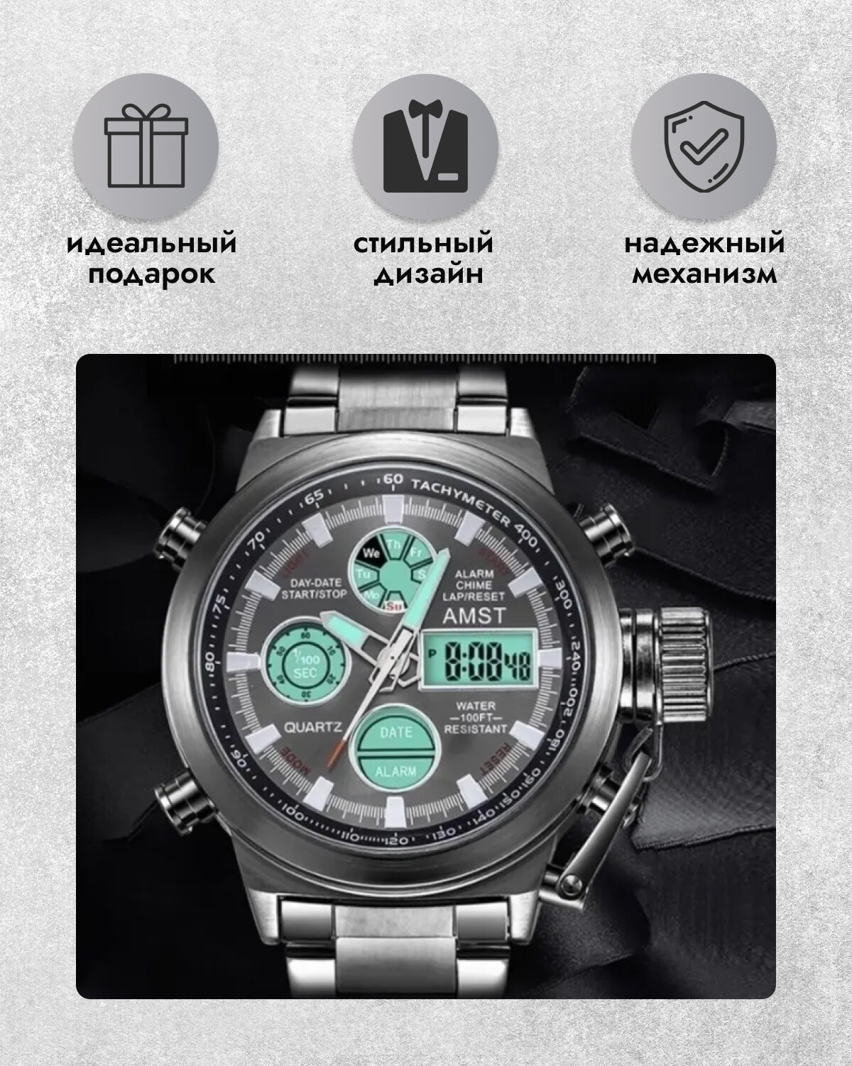 | Дополнительная информация | наручные часы для охоты, мужские часы для рыбалки, армейские часы для подарка мужчине, часы amst на день рождения, наручные мужские часы для активностей, спортивные часы для бега, стильные часы на повседневность, красивые часы для подарка |